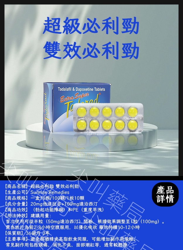 超級雙效必利勁」:一是含有達泊西汀(必利勁成分)+ PDE5抑製劑